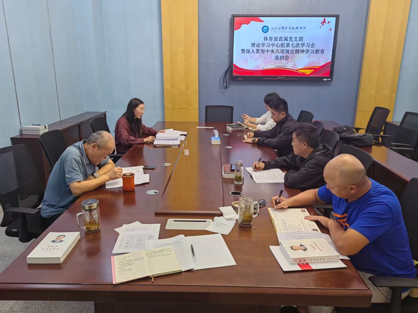10月16日下午,体育部直属党支部召开理论学习中心组第七次学习会暨深入贯彻中央八项规定精神学习教育总结会。理论学习中心组全体成员参加会议,会议由体育部直属党支部负责人王统娟主持。