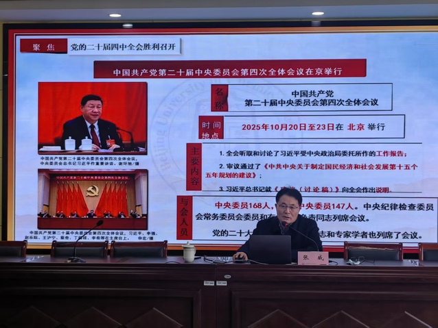 首先,支部组织全体党员参加了党的二十届四中全会精神宣讲报告会。报告会特邀学校马克思主义学院院长张威教授作专题辅导。张威教授以“深学笃行党的二十届四中全会精神 接续推进中国式现代化”为主题,系统阐释了全会的重大意义与战略部署,并结合教育领域的发展方向进行了深入解读。体育部全体党员认真聆听学习,进一步领会了全会精神的核心要义。