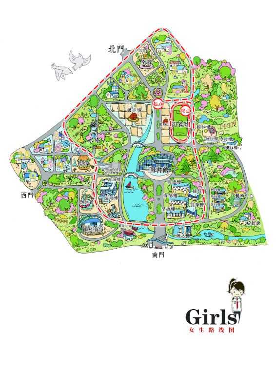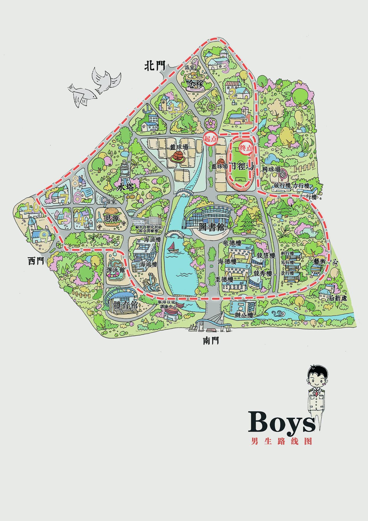 1、健身跑:田径场400米--田径场北门(向左)--篮球场北--篮球场西--轮机楼--二期食堂--体育馆方向结束