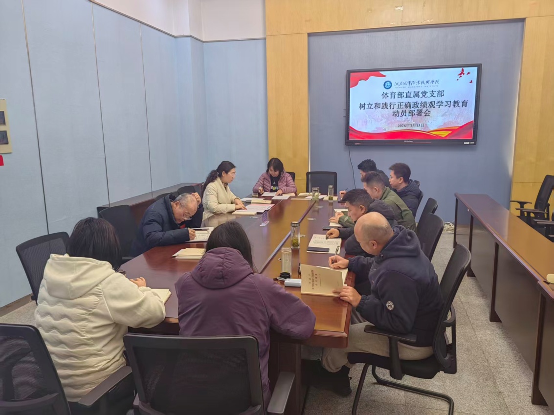 2026年3月13日上午,体育部直属党支部在体育馆会议室召开党树立和践行正确政绩观学习教育动员部署会,体育部党政班子成员和全体党员老师参会。体育部直属党支部负责人王统娟主持会议并作了动员讲话。
